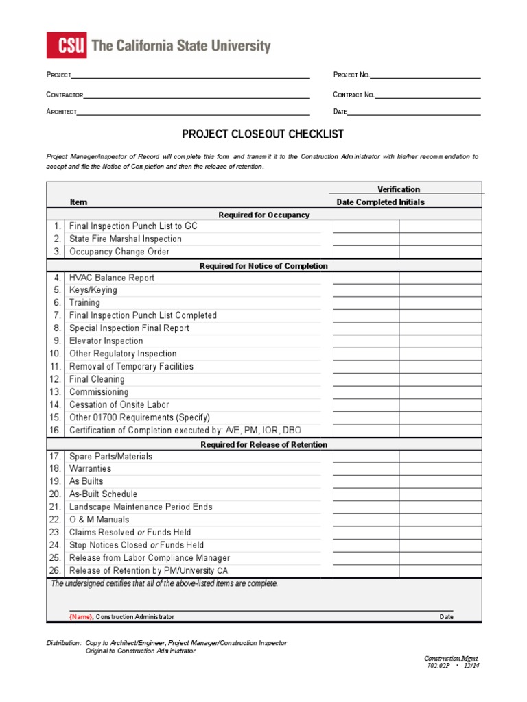 Construction Project Closeout Checklist Template Page 1 Line 17qq Com